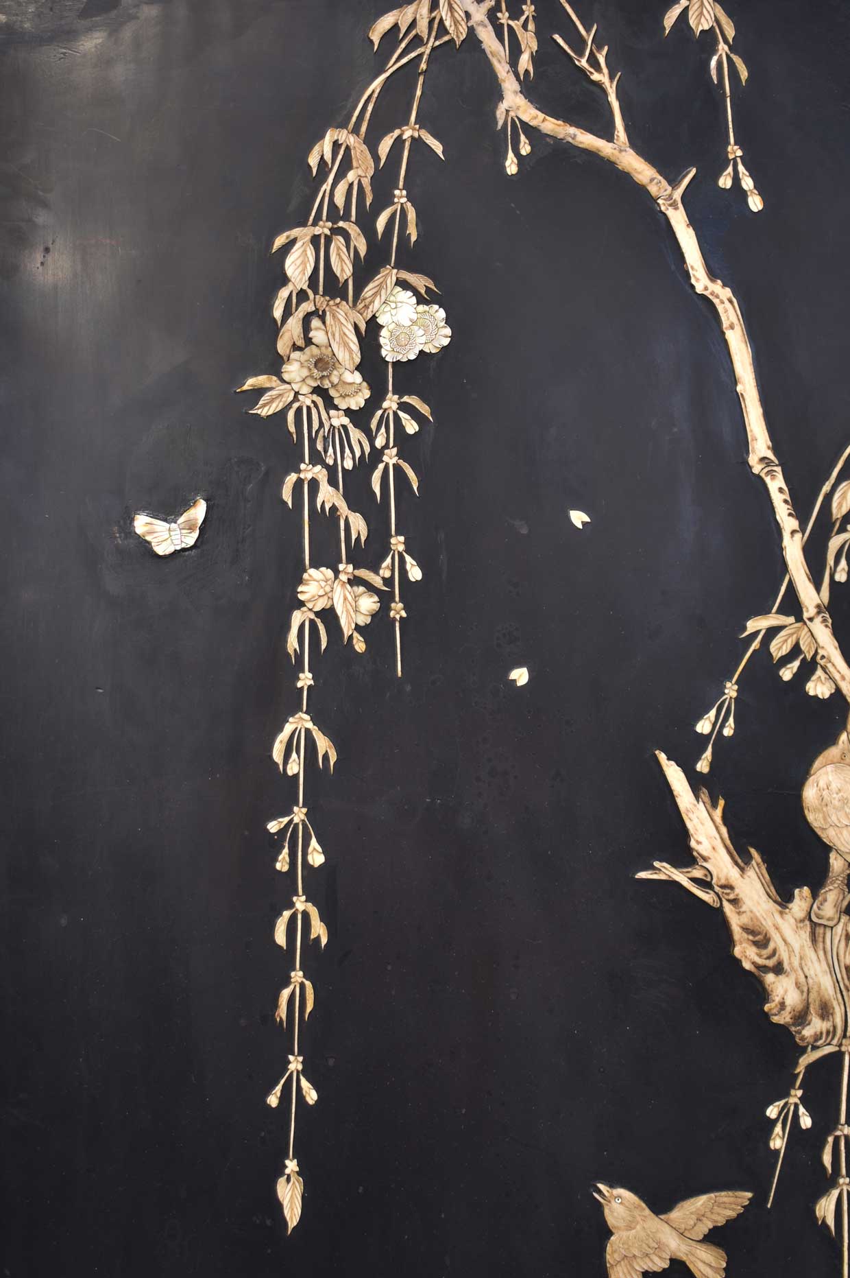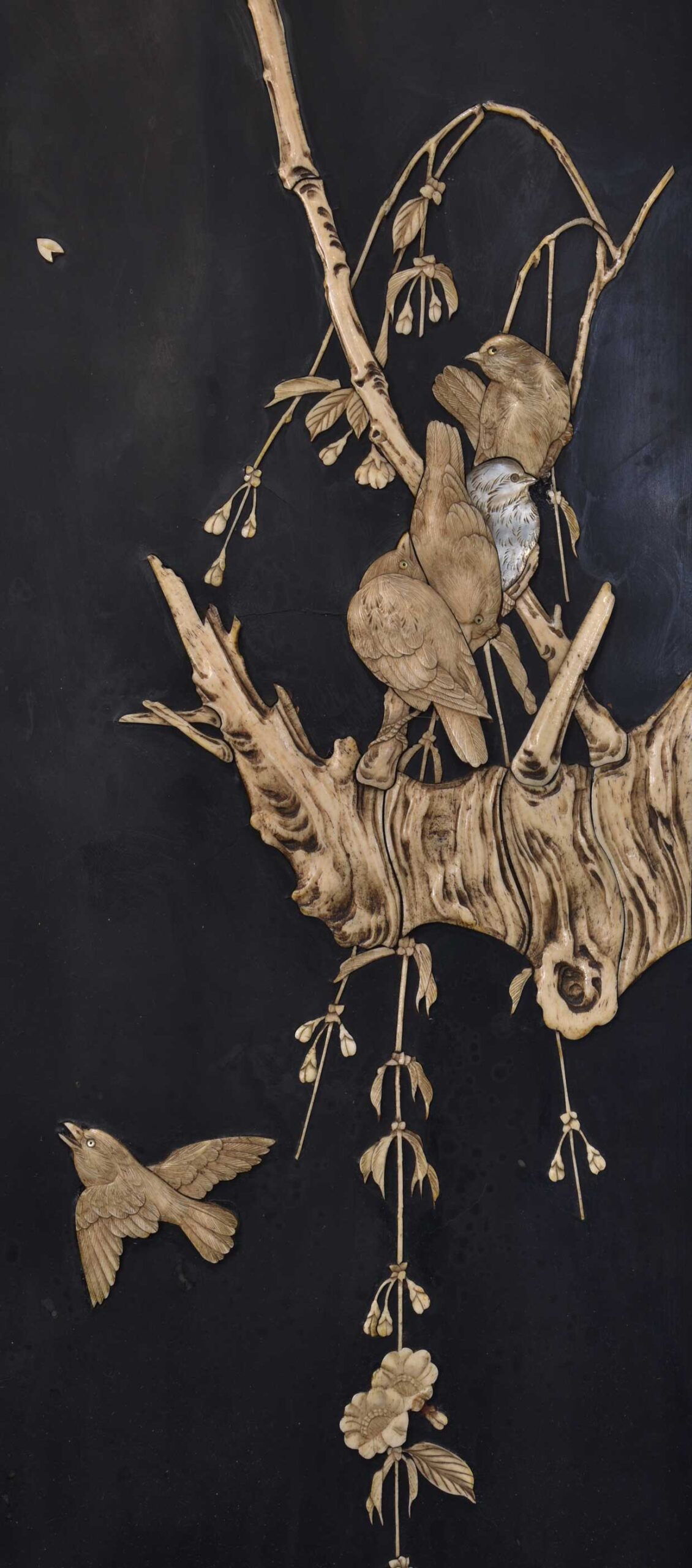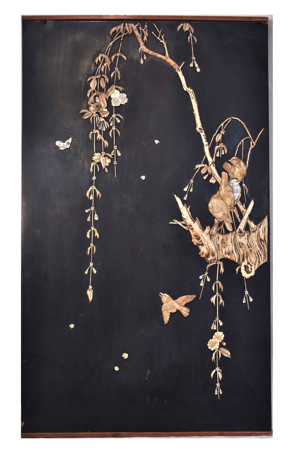 This intricately crafted panel showcases traditional Japanese design and craftsmanship, making it a unique and valuable addition to any collection of Asian antiques.