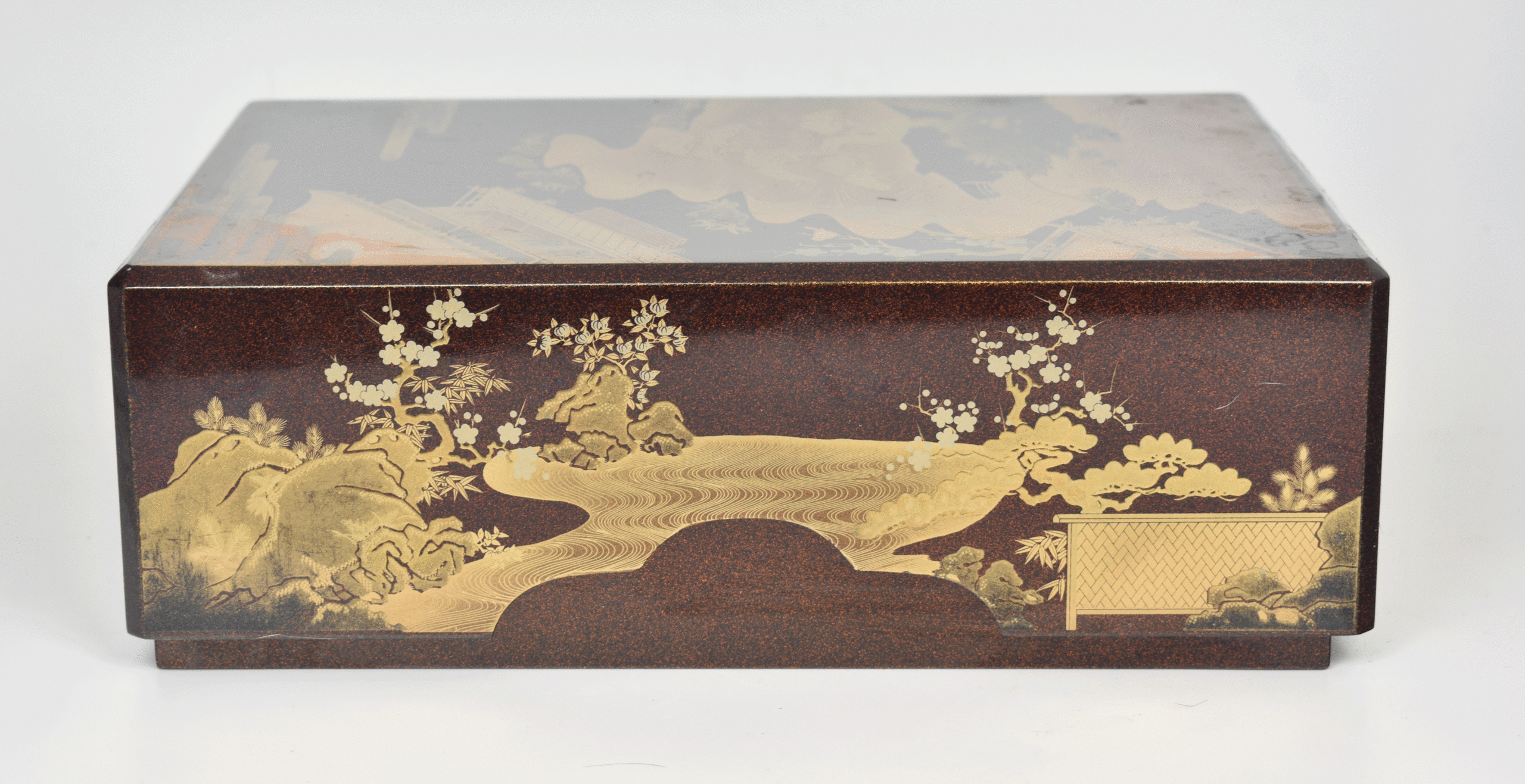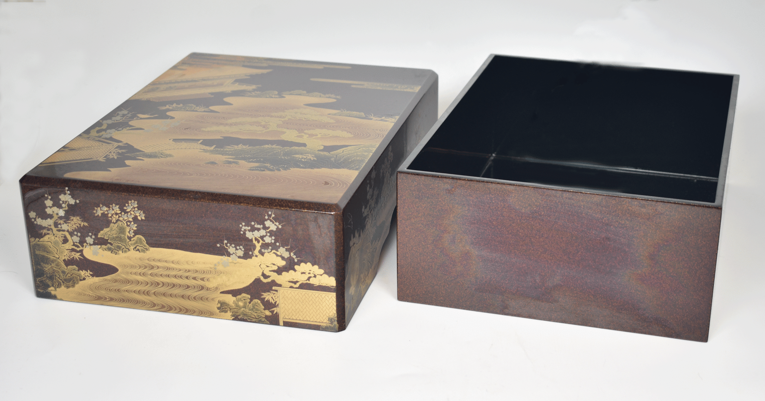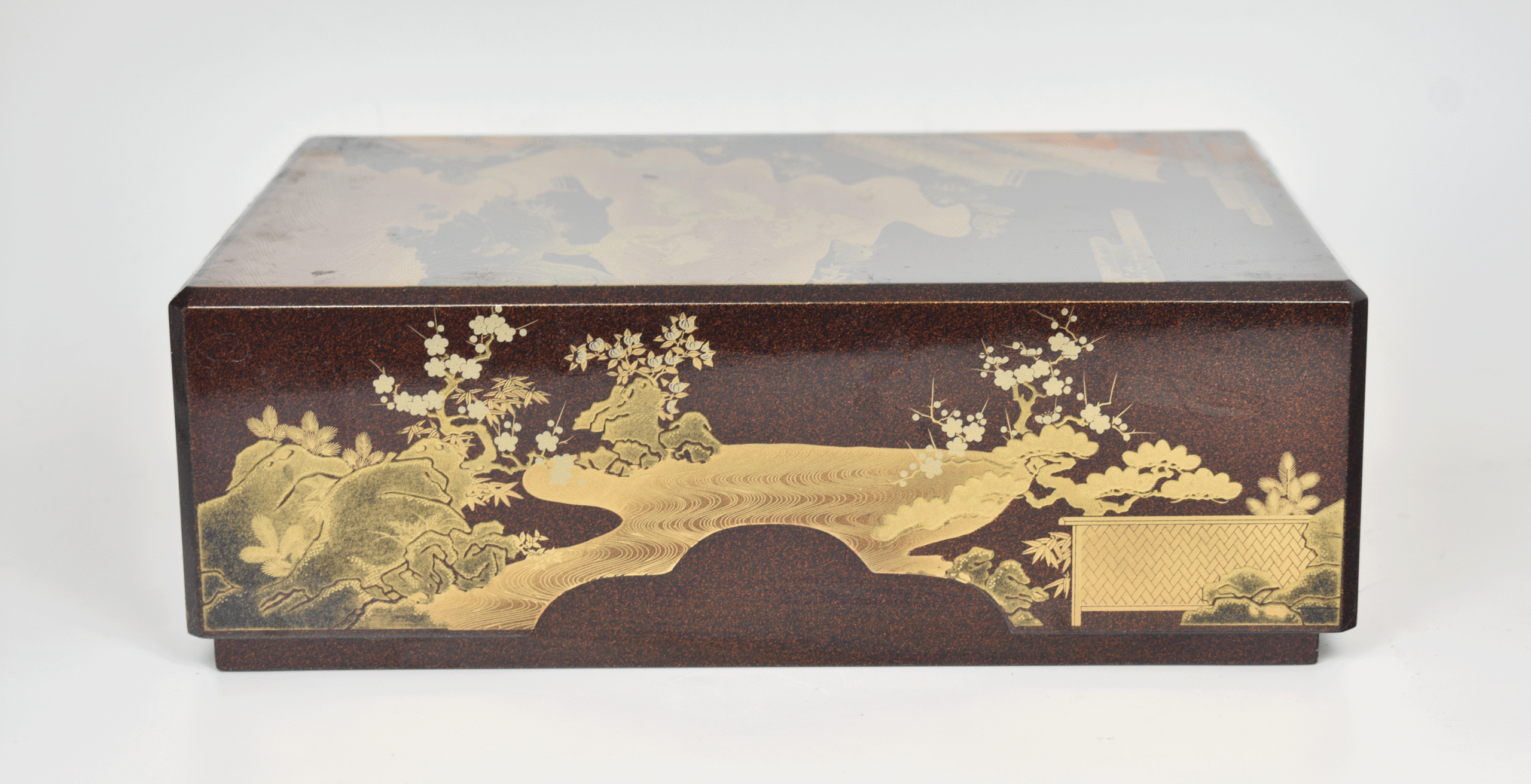 Lacquered Urushi wood-box – High-class Japanese garden Makie – Shōwa period