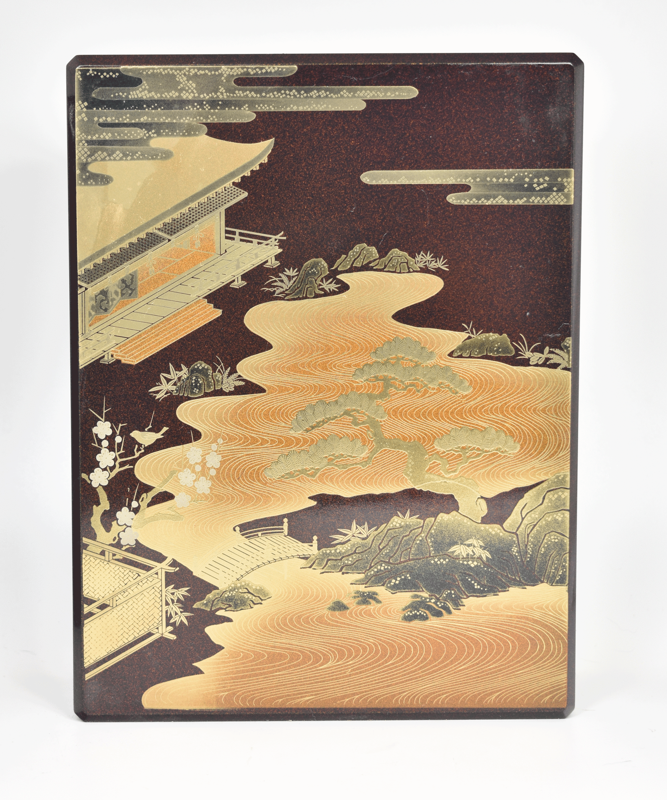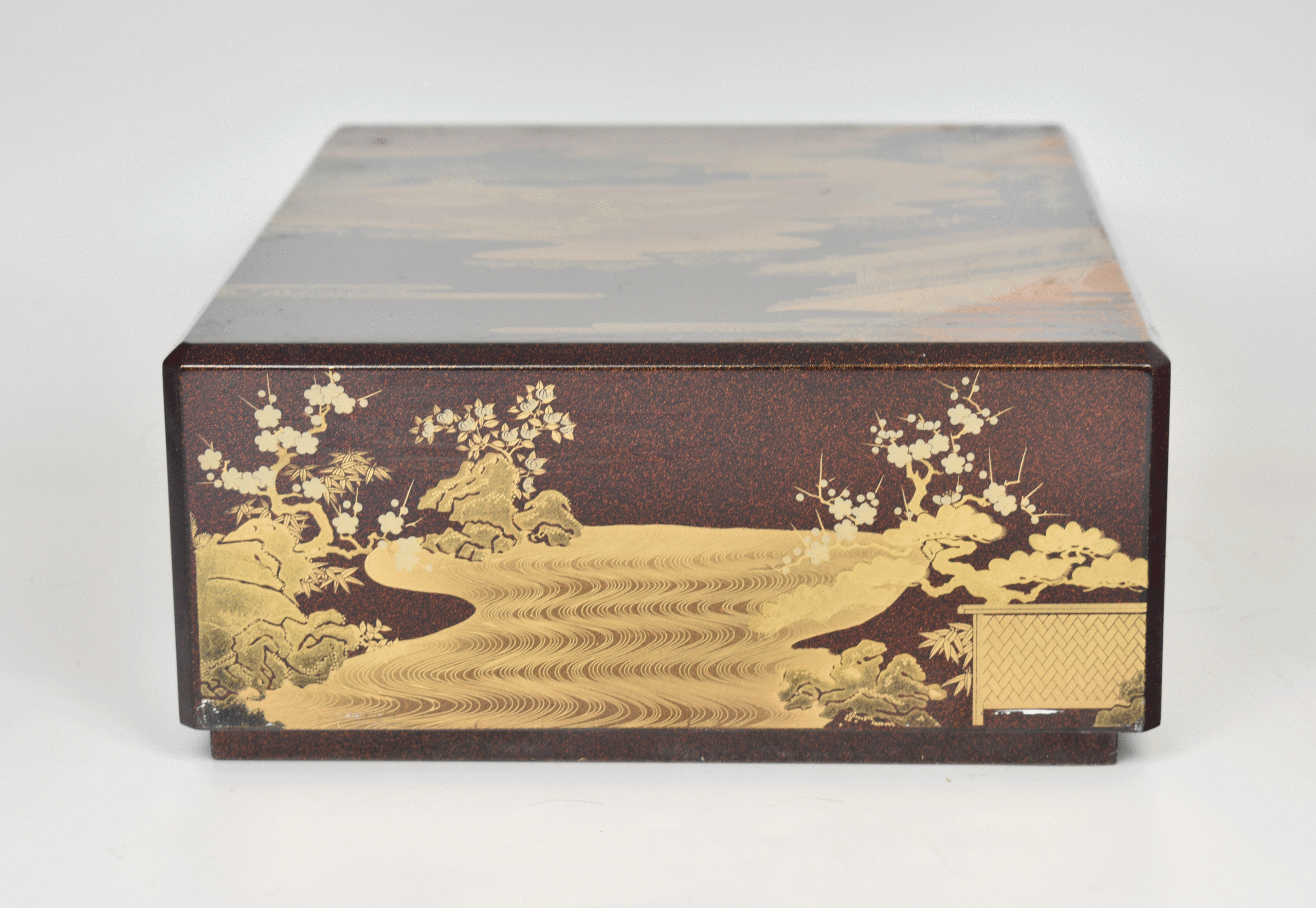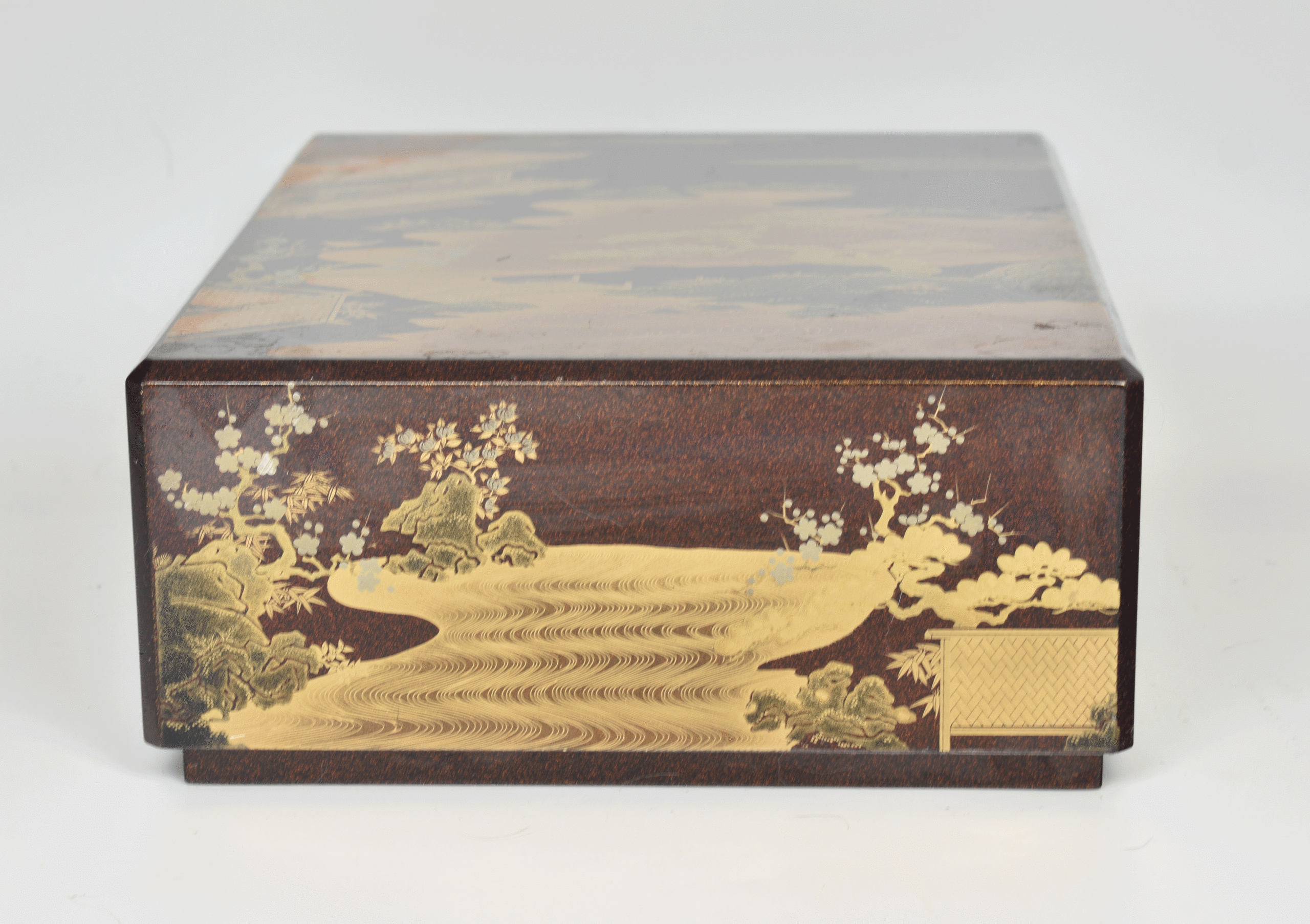Lacquered Urushi wood-box – High-class Japanese garden Makie – Shōwa period